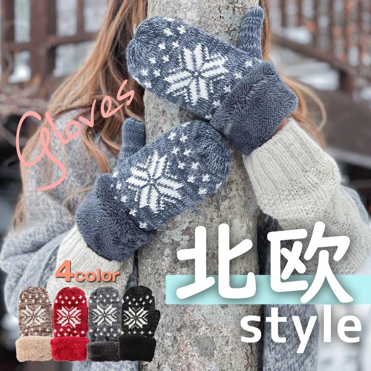 手袋 レディース ミトン 暖かい ボア 二重 柄 内側5本指 誕生日 プレゼント 女性 送料無料 400 04 グローブデポ 手袋と靴下の専門店 通販 Yahoo ショッピング